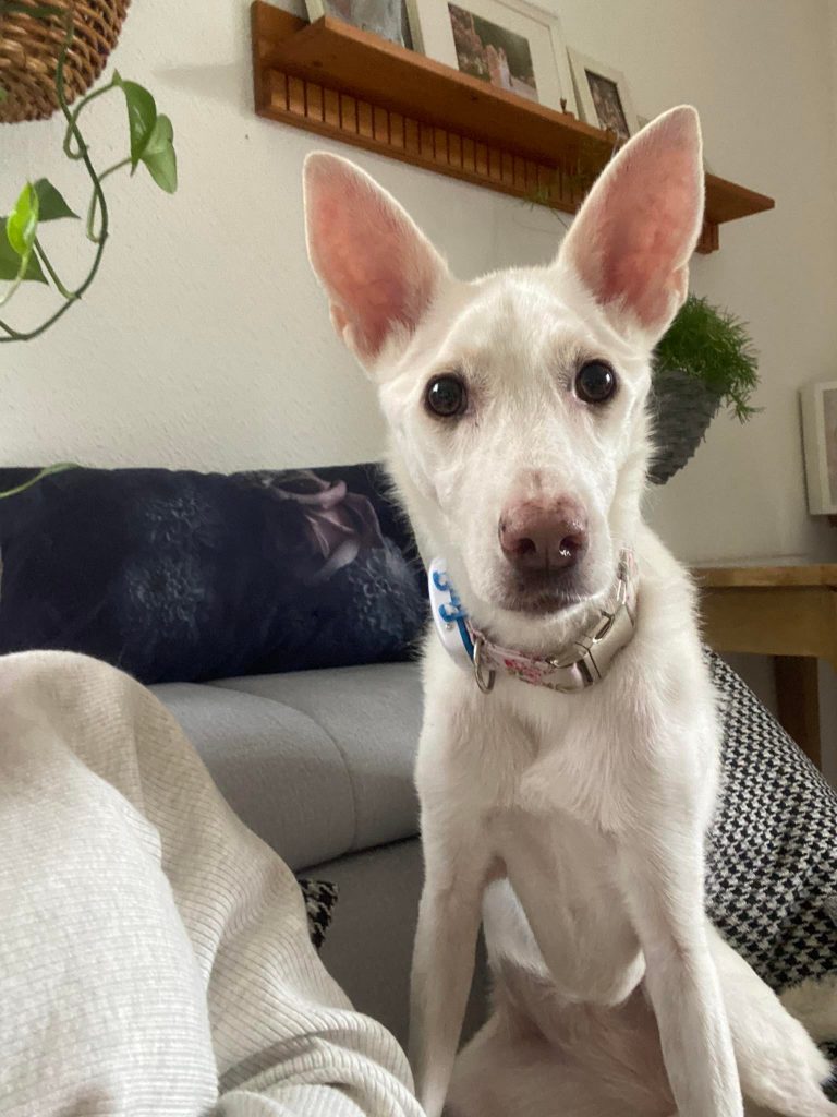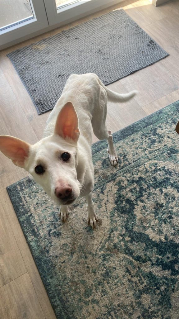 Die Pflegestelle machte nach einer anfänglichen Ruhezeit, um anzukommen und etwas Kraft zu tanken, einen Schritt nach dem anderen für Abby möglich. So ließen wir die Zähne richten, die Impfungen nachholen und die Pflegestelle arbeitete intensiv mit Abby an all ihren Problemen: Böden, Gassi, Haltung, Treppensteigen…