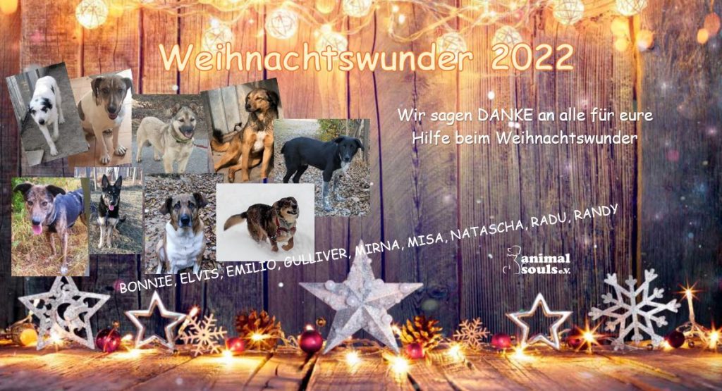 wir wollen euch gerne über das Ergebnis des Weihnachtswunders informieren und euch mitteilen, dass wir, Animal Souls e.V., die Geldbeträge zu Weihnachten aufgerundet haben.