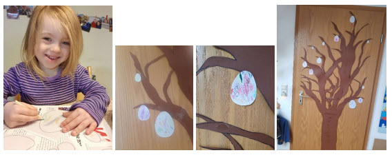 bemalt und an den selbstgebastelten Ostereier-Baum geklebt.