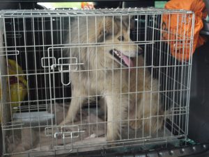 Die Mutterhündin muss auf jeden Fall mit und kommt in den zweiten Transportkäfig in den Sprinter. Und nun haben wir wieder ein Problem: wir haben zwar eine dritte Transportbox, die aber für Sibiu zu klein ist. Was tun?
