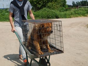 Also versuchen wir erst die Mutter-Hündin umzusetzen. Die Versuche schlagen fehl, sie will nicht mehr heraus. Nun bleibt nur noch die verletzte Maus … sie ist kleiner und Gott-sei-Dank klappt es, sie vorsichtig in die dritte Box zu legen. Jetzt muss Sibiu noch in den größeren Käfig … wieder schieben wir zu zweit Sibiu in den Käfig, wieder weint der arme Kerl. Aber dieses Mal geht alles gut! Jetzt noch ins Auto heben und sicher verstauen …. GESCHAFFT!