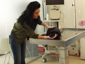Während im großen Raum die Kastrationen weiter laufen, kommen im eigentlichen Behandlungszimmer der Klinik nun 3 der Hunde zur Untersuchung, die gestern von dem Bauernhof mitgenommen wurden. Wir werden hinzu gerufen und dürfen bei den Untersuchungen dabei sein. Unter den dreien ist auch das schwarze Hundemädchen mit den Hautproblemen. Sie hat so viel Angst! Wenn man ihr nur erklären könnte, dass wir ihr nur helfen wollen. Die arme Maus hat Demodex und wird auf jeden Fall weiter behandelt. Ich bekomme auch den Laborraum gezeigt. Obwohl es eine sehr kleine Klinik ist, stehen mehrere Laborgeräte bereit, womit innerhalb weniger Minuten die Ergebnisse vorliegen.
