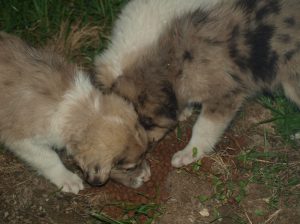 Die Leute sind freundlich. Sie erklären, dass es insgesamt 8 Welpen gewesen seien. 3 sind gestorben. Sie sind sehr erleichtert, als wir sagen, dass wir sie mitnehmen wollen. Nur: wir haben ein kleines Problem …. Wir haben nicht an eine Hundebox gedacht! Wie konnten wir das vergessen. Es ist nur eine zu kleine Plastikbox im Auto und auch noch einiges an Futtersäcken im Kofferraum. So bekommen wir die 6 nicht hinein.