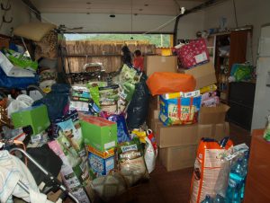 Für uns geht es erst einmal ein paar Häuser weiter zu Andra. Leider hatte ihr Aslan Probleme und Andra konnte nicht gut schlafen – wie so oft. Nun wollen wir sie erst einmal aufmuntern. Wir haben jede Menge Spenden dabei. An dieser Stelle auch ganz herzlichen Dank an alle, die uns unterstützt haben und dies alles nun möglich machen!! Nach und nach tragen wir also Körbchen, Decken, Pipi-Unterlagen, Katzen-Kratzbäume, Katzen- und Hundefutter in Andras Garage. Es türmt sich langsam ein kleiner Berg auf. Es ist wirklich viel zusammen gekommen und wir hoffen sehr, dass es Andra zumindest für eine Weile hilft.