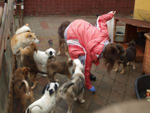 Das Regenwetter tut hier sein Übriges. Wir wünschen uns sehr, dass alle Hunde vermittelt werden und in ein schönes Zuhause reisen dürfen. Denn nur so können auch weitere Hunde gerettet werden. Durch die vielen Hunde ist bei Andra natürlich immer viel los. Die Hunde müssen versorgt werden, sie brauchen Auslauf und es müssen täglich mehrmals die Hinterlassenschaften aufgesammelt werden. Gleichzeitig immer ein Blick auf die Form des Kotes und auf das Verhalten der Hunde. Hustet einer? Ist das Kacka zu dünn? Andra muss ständig alles im Auge behalten. Und auch die kleinen Patienten müssen versorgt und gepeppelt werden, Welpen, die krank waren und noch besonderer Pflege bedürfen.