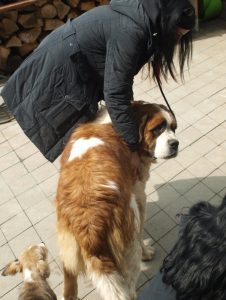 Nachdem alle Kastrationen und Untersuchungen abgeschlossen sind, fahren wir schließlich am Nachmittag noch zu Pamela. Auch sie beherbergt einige der Vermittlungshunde. Unter anderem treffen wir dort auf Bernhardiner Barney, den wir eigentlich am Ende unserer Reise mit nach Deutschland nehmen sollen. Für den üblichen Transporter ist er zu groß … ob er wohl bei uns ins Auto passt??? Es ist schon ein kleiner Koloss, aber trotzdem ein lieber Kerl. Wahnsinn wie auch Sabrina mit ihm umgeht. Auch Finchen, die mit Hautproblemen zu kämpfen hat, ist hier untergebracht. Sie muss noch zum Tierarzt zur Kontrolle und wo sie regelmäßig ein Bad bekommt für die Haut. Dummerweise hat sich die Maus gekratzt, die Haut entzündet und so kann sie nicht gebadet werden. Also wieder ein kleiner Rückschlag.