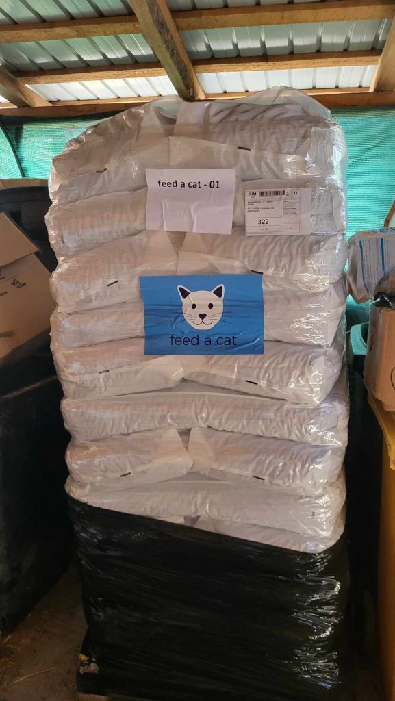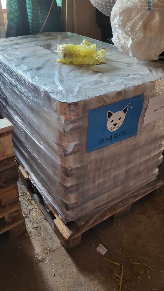 Riesengroßes Dankeschön an Feed a Cat für die Lieferung von 2 Paletten Katzenfutter im September 2023