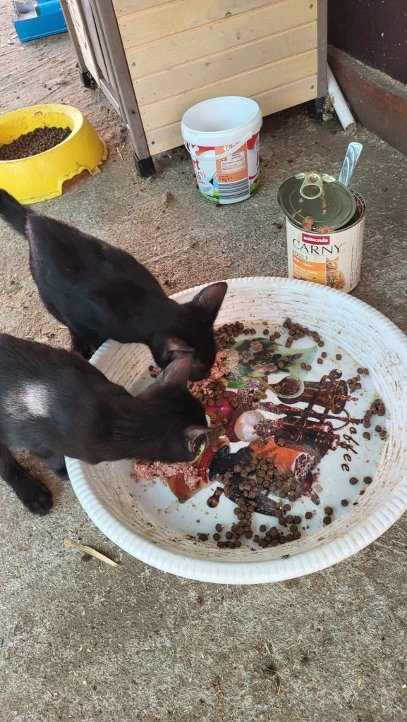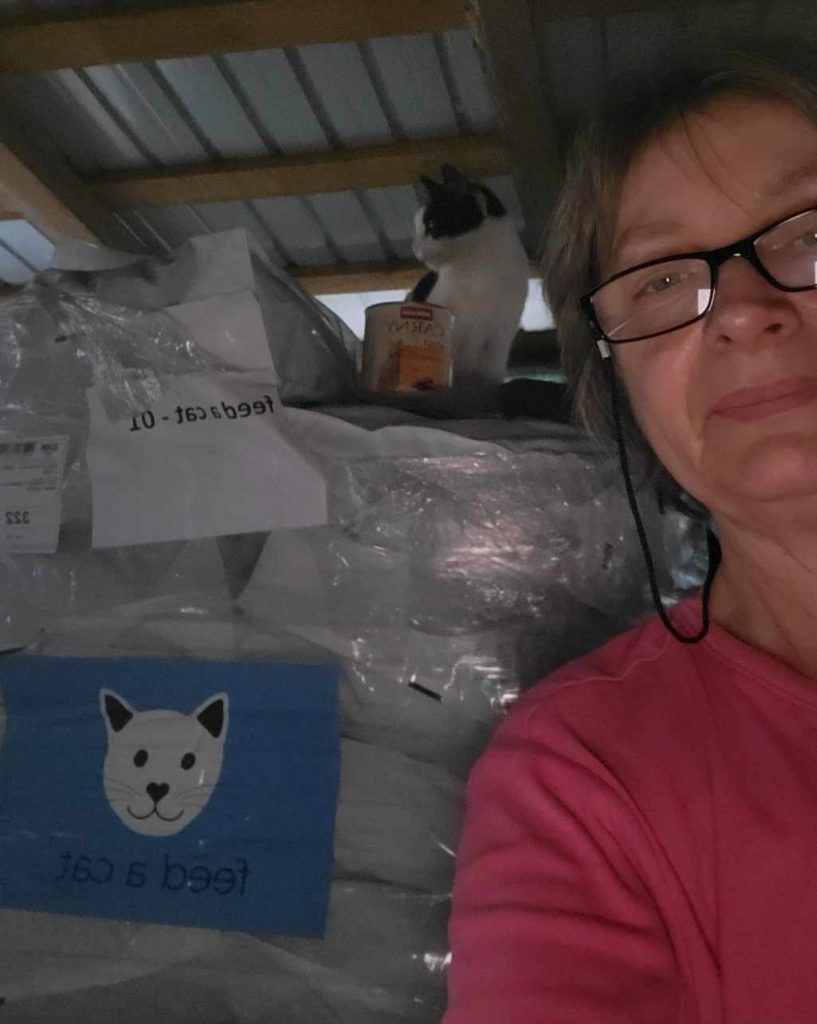 Mit 2 Paletten Futter stellte sie die Versorgung ihrer Katzen und auch anderen Katzenbesitzern im Ort sicher.
