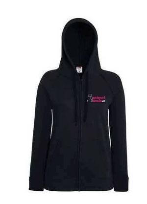 Körpernah- geschnittene Damen- Sweatjacke in schwarz mit Animal Souls e.V. Logo.