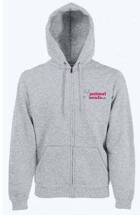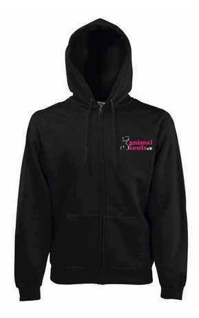 Locker sitzende Sweatjacke mit Animal Souls e.V. Logo für Damen und Herren.